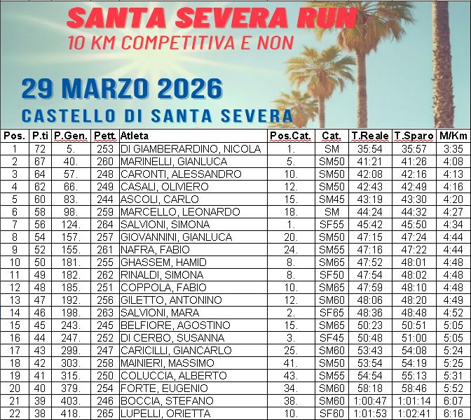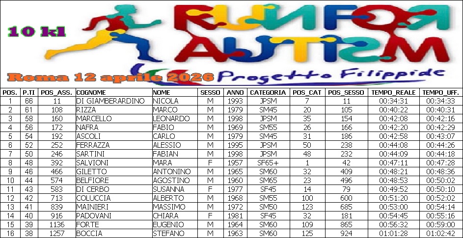 estratta la graduatoria dei soli atleti della Podistica Casalotti