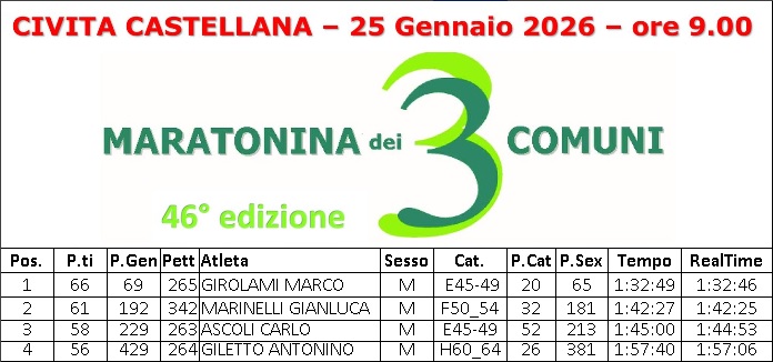 estratta la graduatoria dei soli atleti della Podistica Casalotti